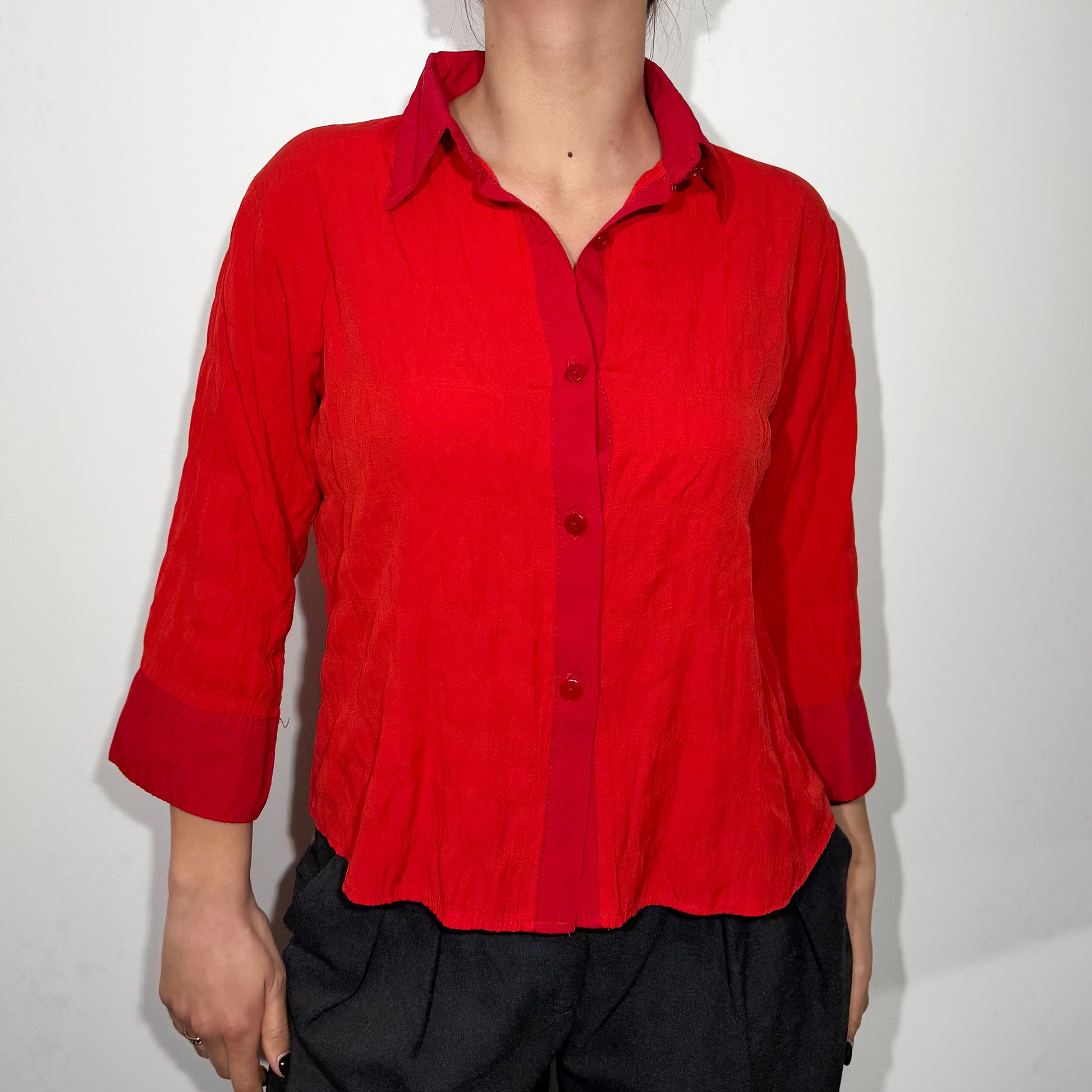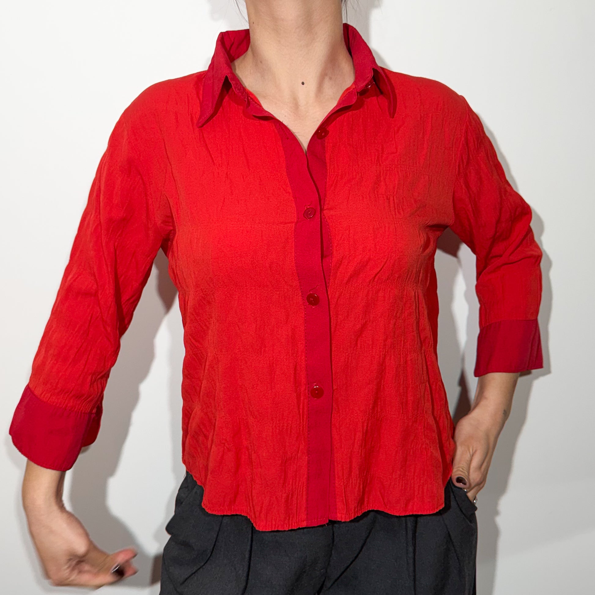 Chemise rouge orangé effet froncé – vintage