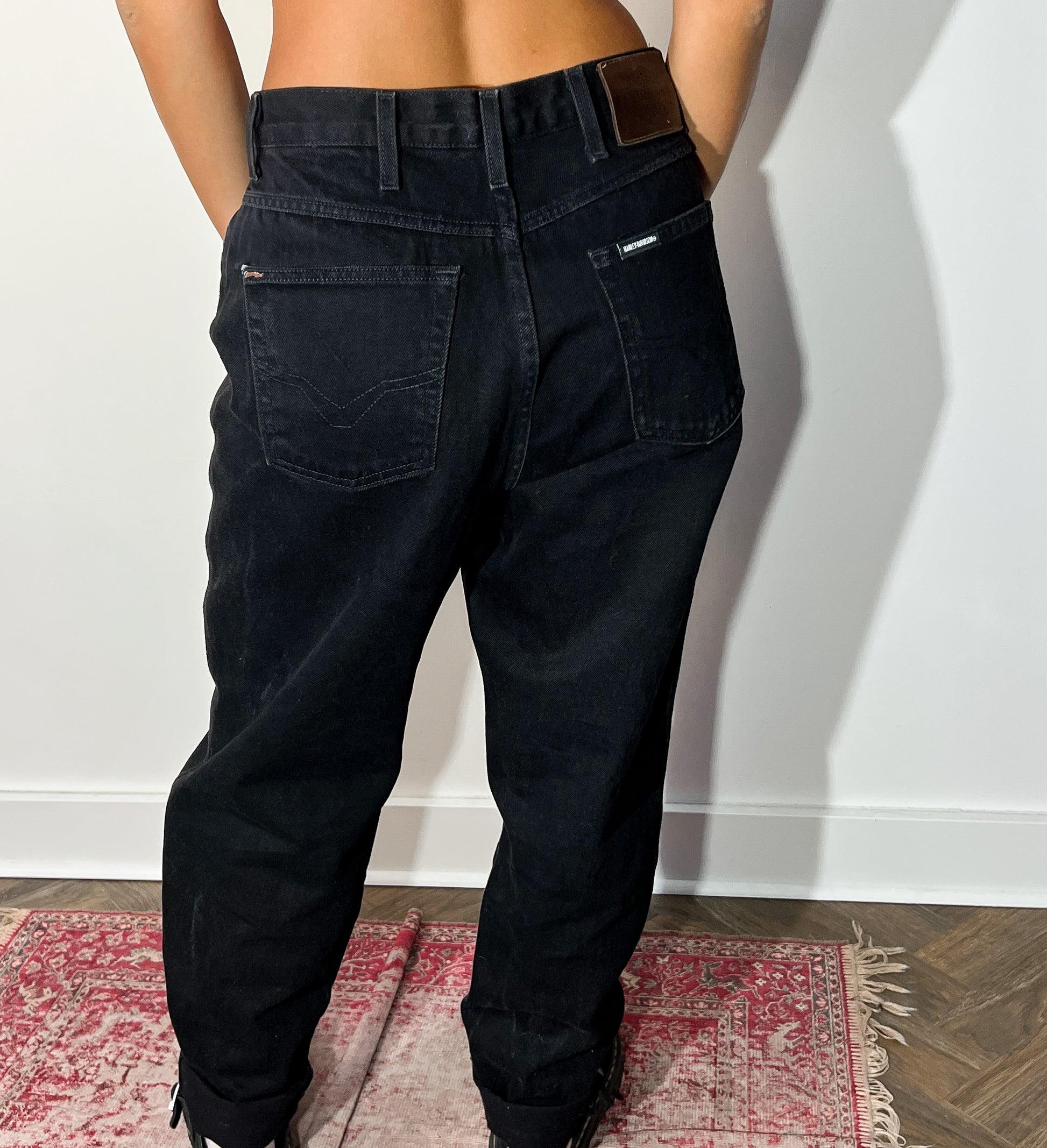 Modèle : Jean Harley Davidson vintage – noir, coupe ballon, made in USA