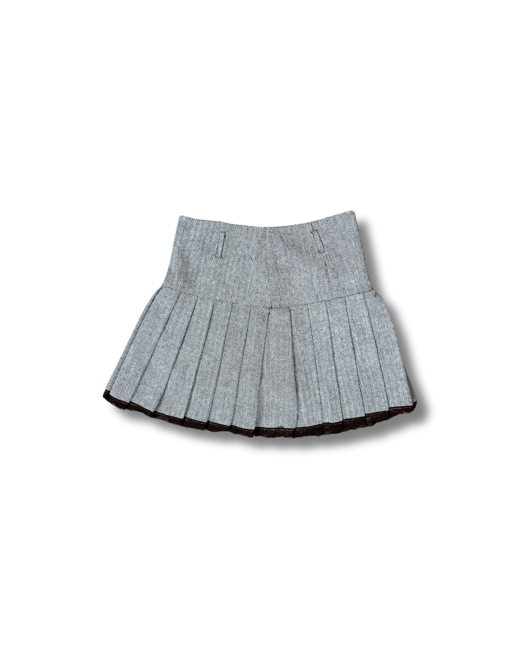 Modèle : Jupe plissée Camaïeu vintage – marron, motif style pied-de-poule avec détails dentelle en bas