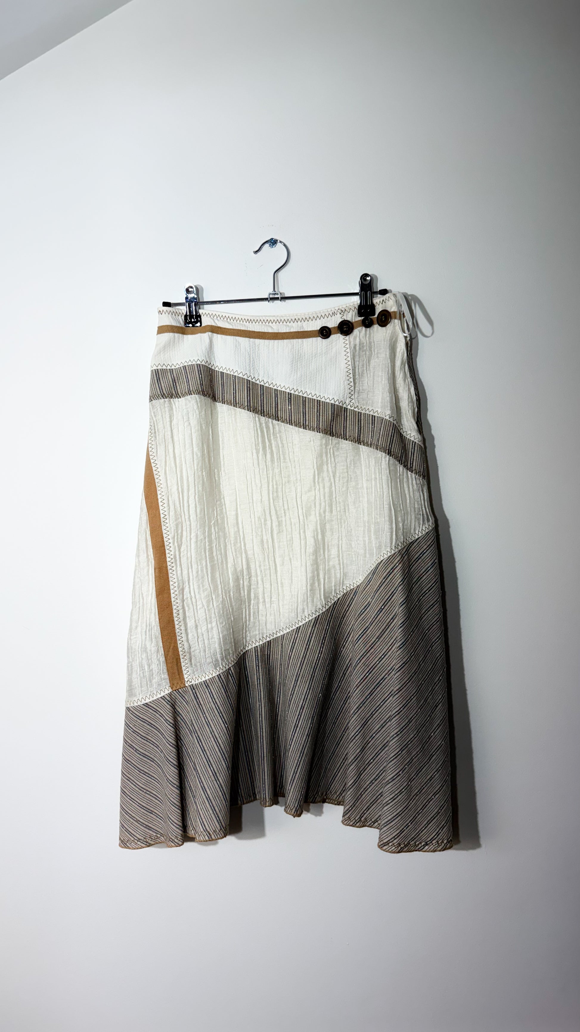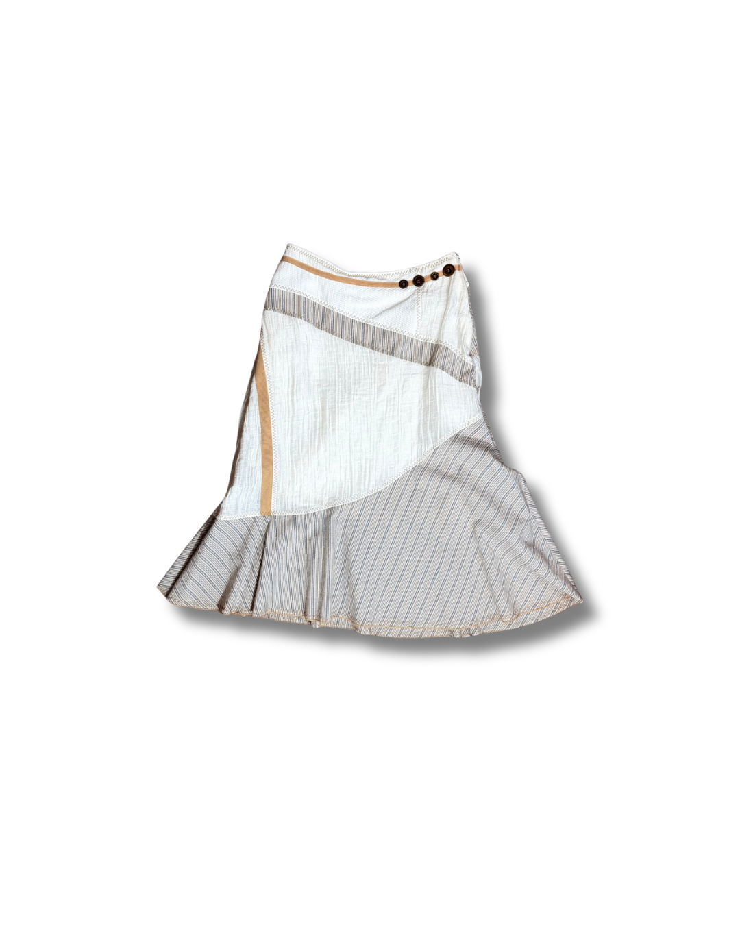 Modèle : Jupe mi-longue asymétrique, coloris crème, style vintage