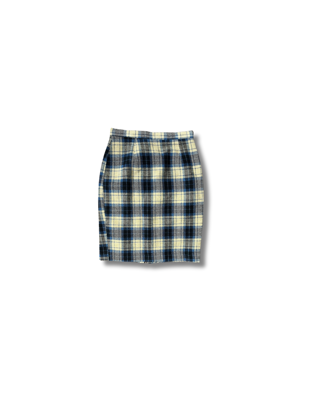 Détails : Motif écossais jaune et bleu, fermeture discrète, finitions propres
