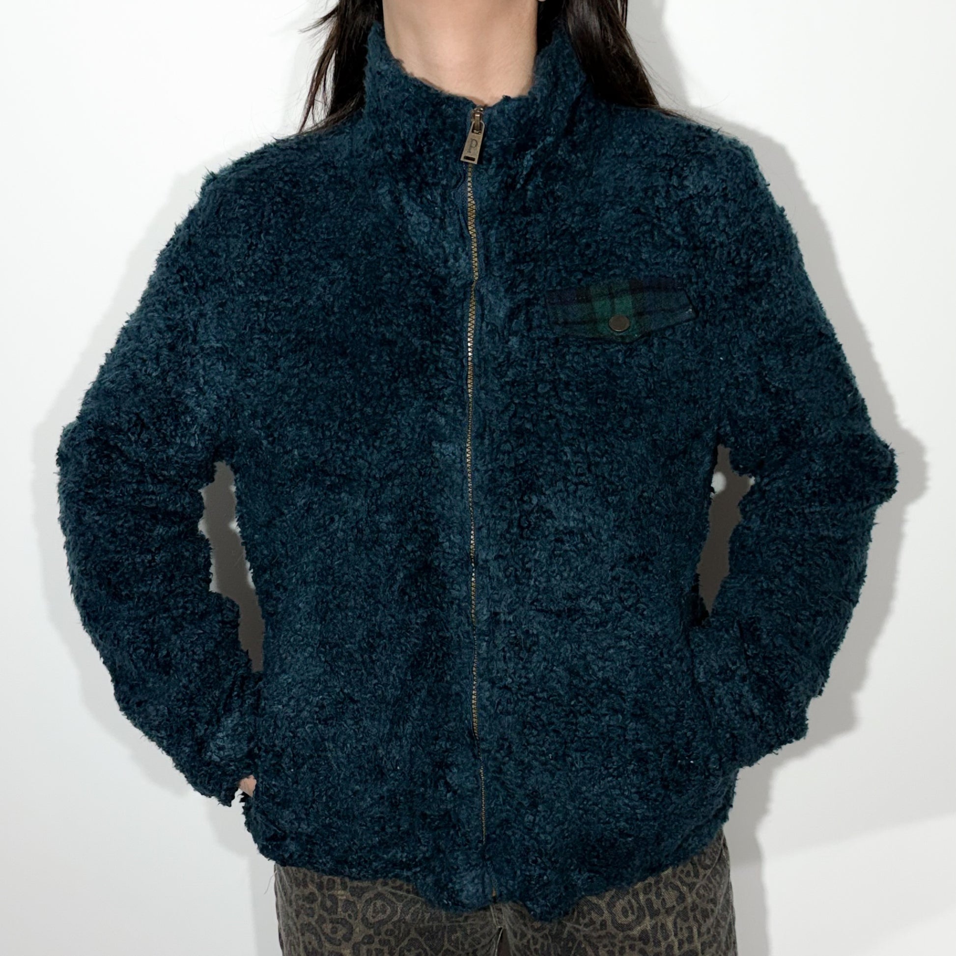 Modèle : Polaire Pendleton bleu canard en maille bouclette, texture douce et chaude