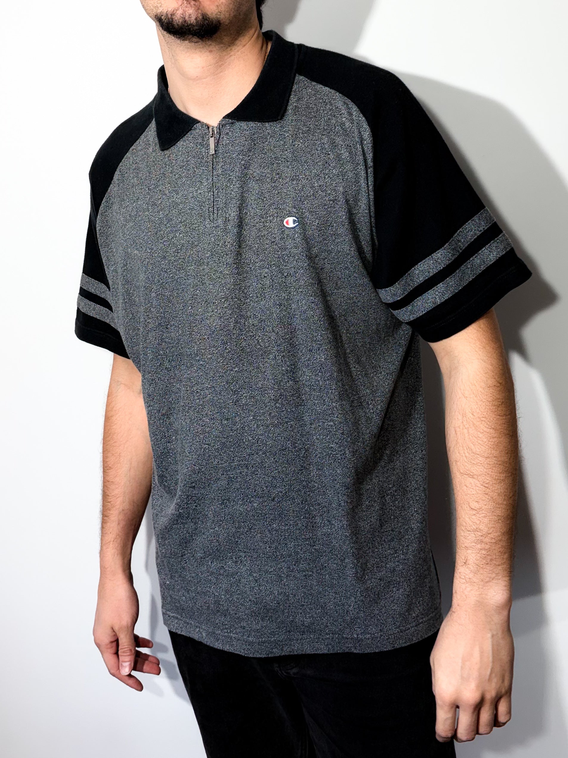 Modèle : Polo manches courtes Champion gris et noir, coupe classique