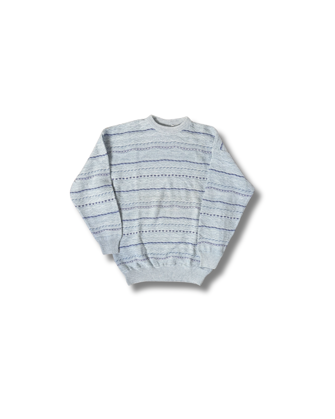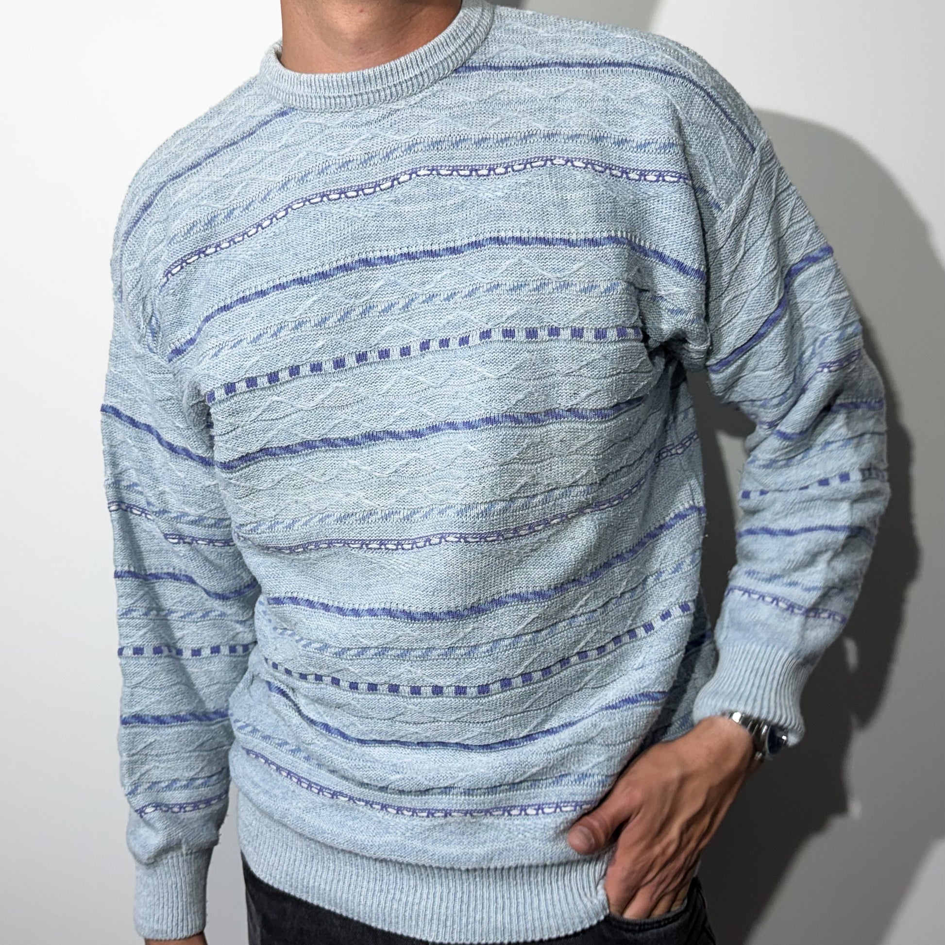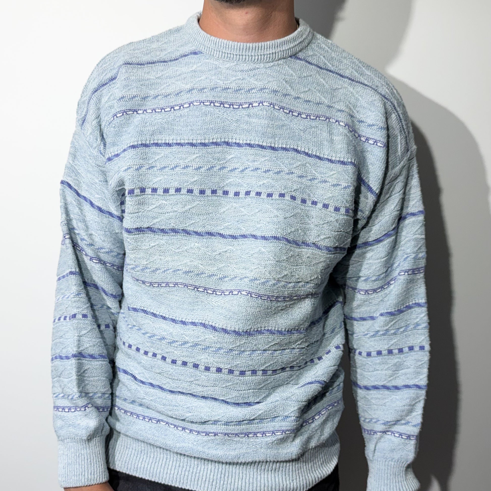 Un pull confortable et coloré avec un motif torsadé, parfait pour un look rétro chic et décontracté. 💜💙