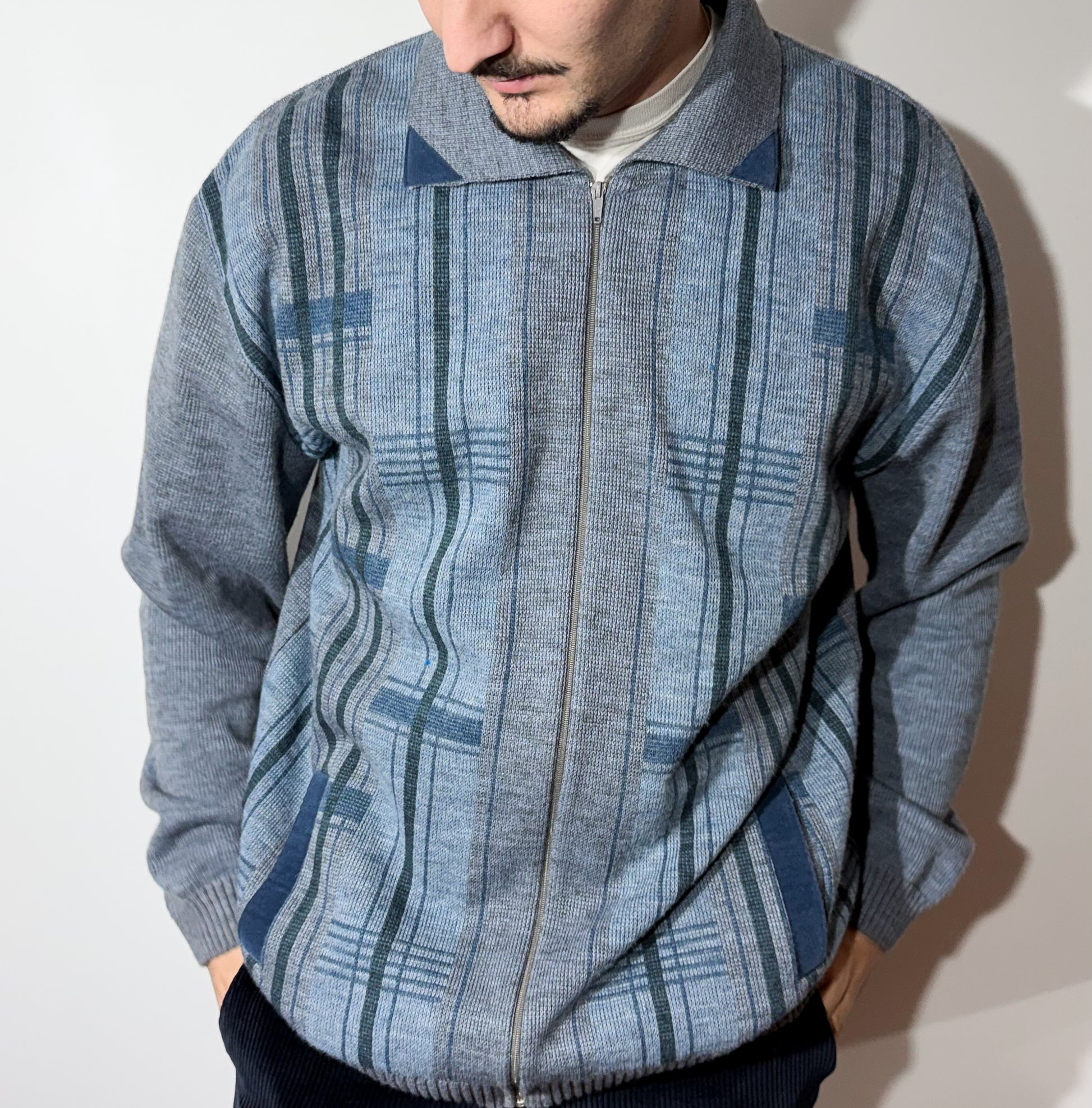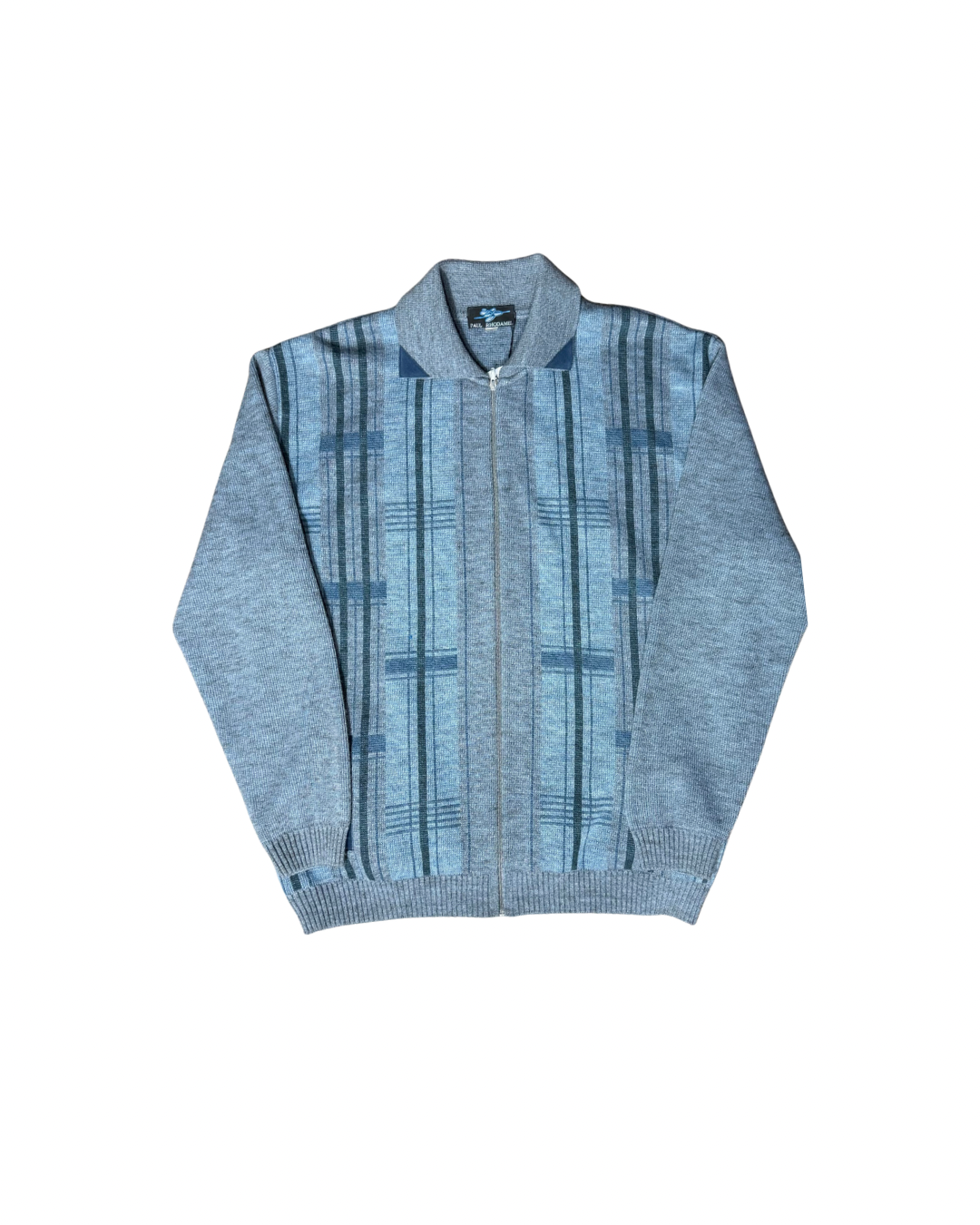 Modèle : Pull zip col polo Paul Rhodamel bleu avec rayures, style vintage
